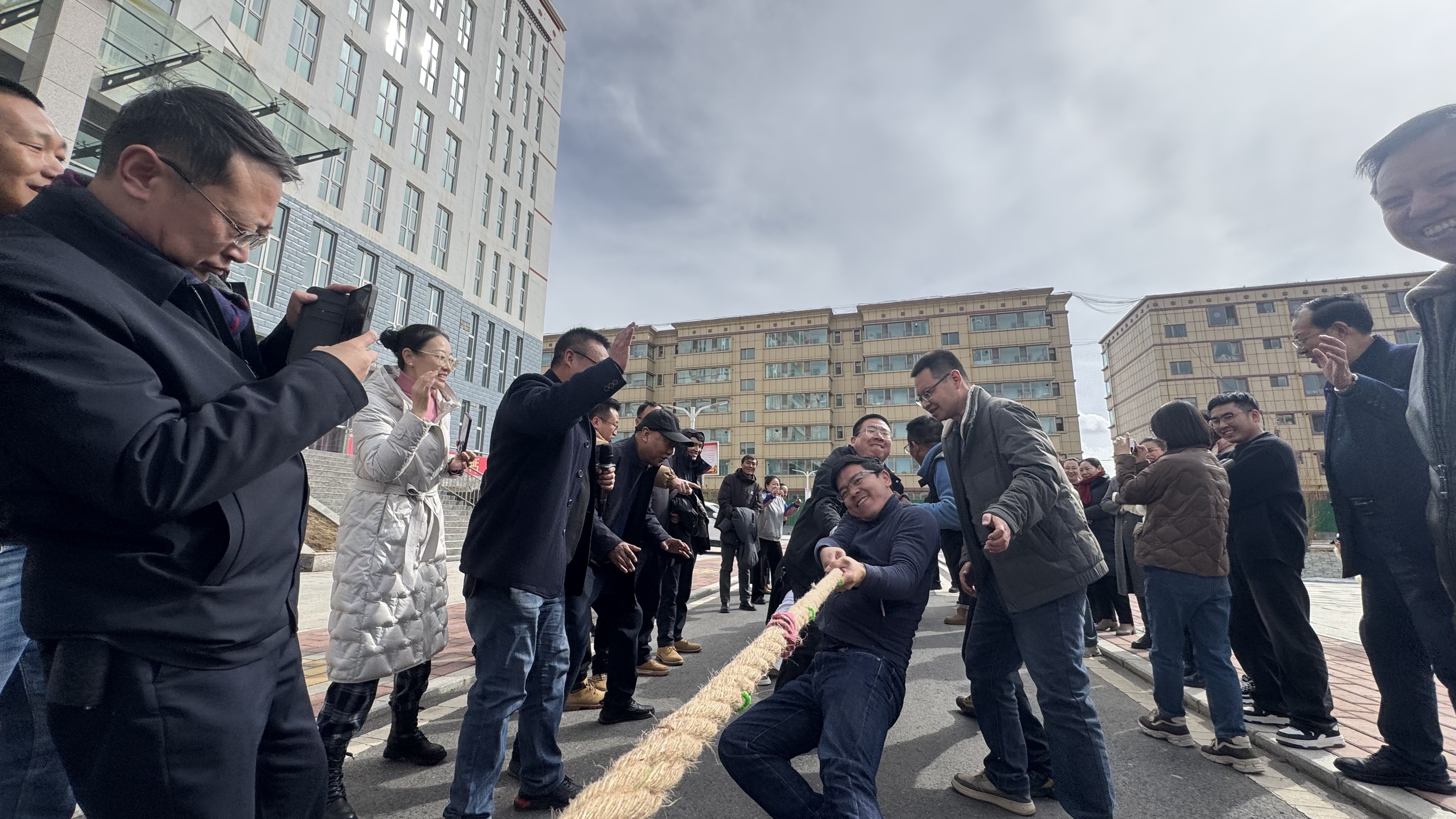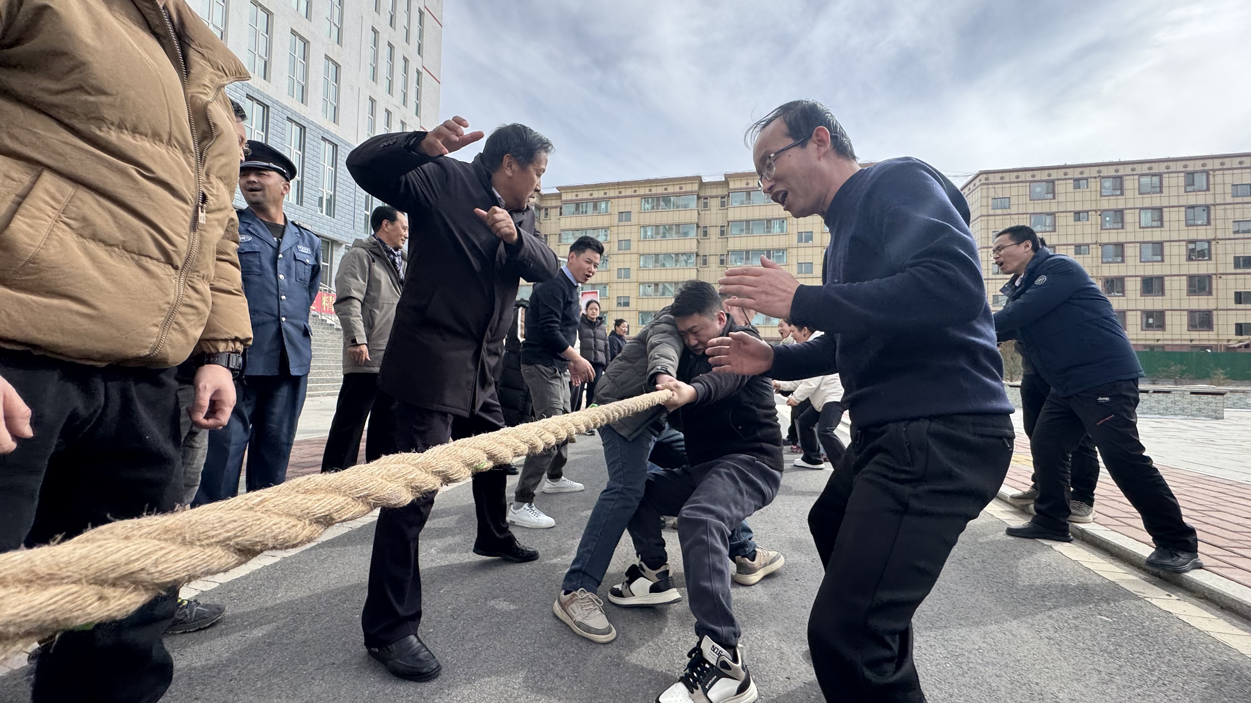 阳春三月,繁花似锦,在第115个“三八”国际劳动妇女节来临之际,为丰富校园文化生活,增强教职工凝聚力与团队协作精神,在公司党总支的组织下,一场活力四射的拔河比赛在公司图书楼前精彩上演。此次活动,不仅将党建工作与校园文化建设紧密融合,展现出公司党总支对教职工的关怀,激励着广大教职工以饱满的热情投入教育事业,还特别邀请了坚木克尔街道那吾路社区的职工干部一同参与,携手共建和谐校园,进一步扩大了活动的影响力与参与度。