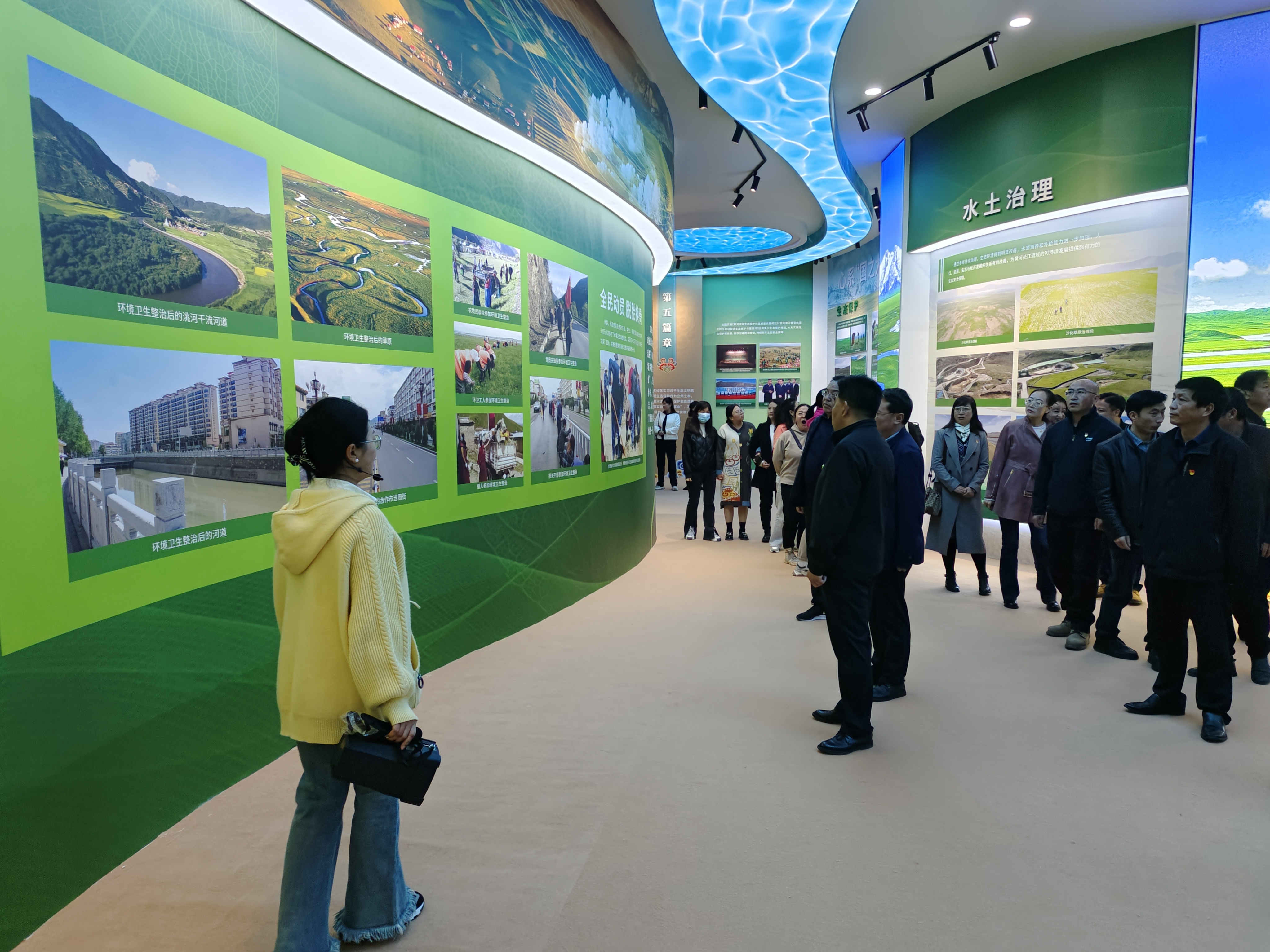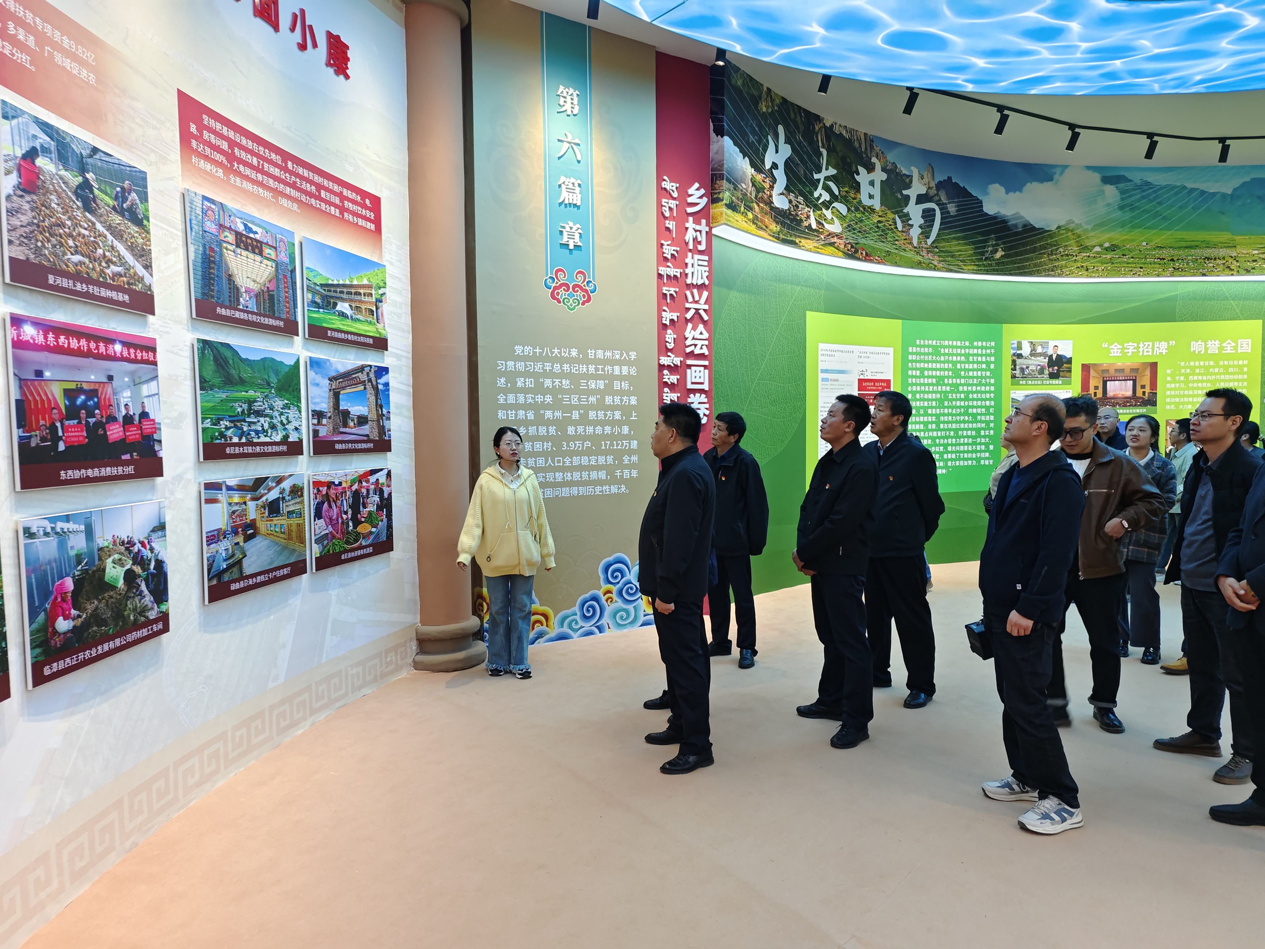 成就展从经济社会发展、非物质文化遗产、特色农畜产品、摄影书画唐卡4个板块,通过图文、影像、实物、互动等多种形式,充分展示了甘南藏族自治州成立70年来,历届州委、州政府团结带领全州各族干部群众牢记嘱托、感恩奋进,勇毅前行、艰苦奋斗,全州各项事业发展取得的新成就、人民群众生产生活取得的新变化,呈现了一幅水草丰美、山川秀美、民族团结、社会和谐、吉祥安康的新时代甘南画卷。