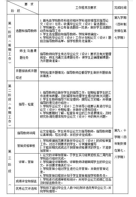 1. 毕业论文撰写于实习期间进行;毕业设计于第七学期起进行。