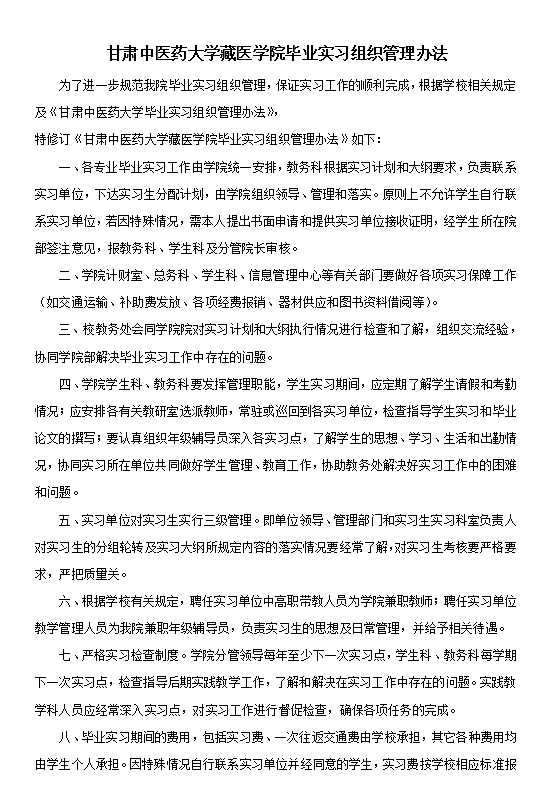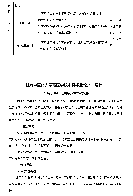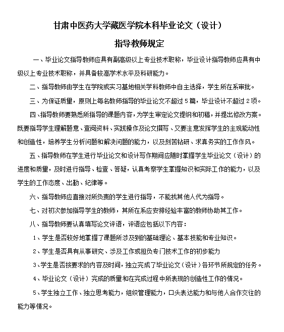 6.公司毕业论文(毕业设计)工作由教务科负责总体安排和业务指导,具体由藏医药三个学科组承担。
