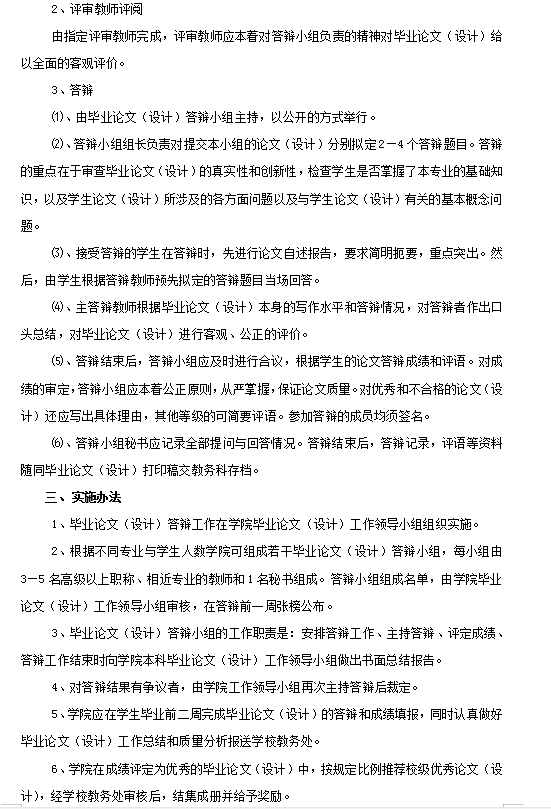 第六十八条、毕业论文(毕业设计)的具体工作由教务科负责。内容包括:工作规划、时间安排、指导教师配备、经费使用;检查进程;组织评审答辩;成绩填报和论文归档。