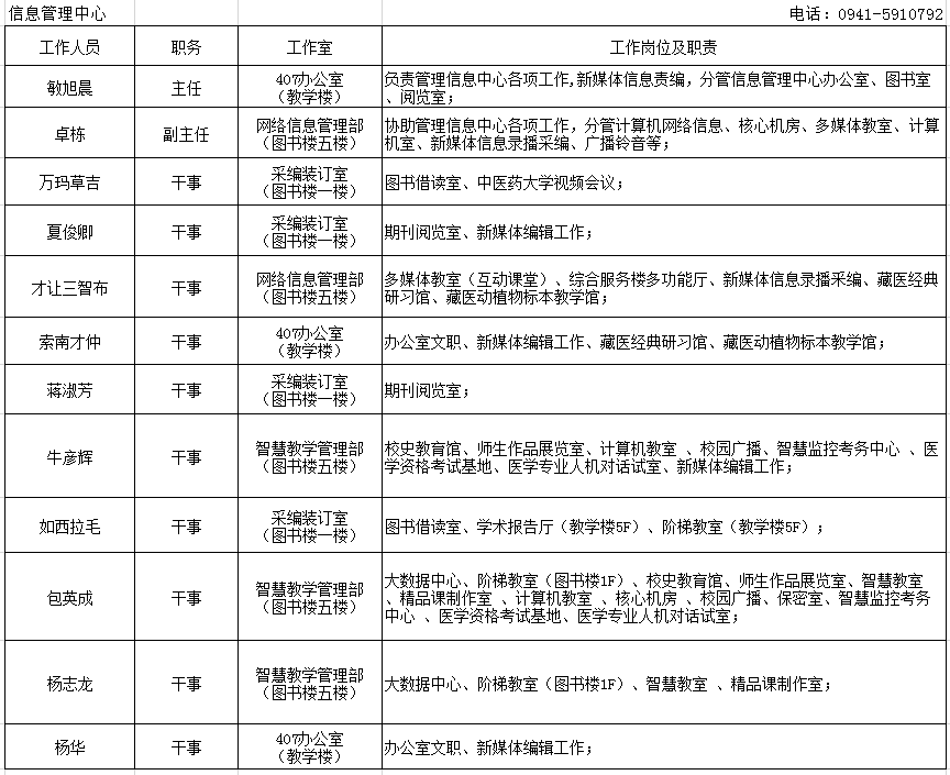 信息管理中心2020-2021学年第一学期工作人员分工