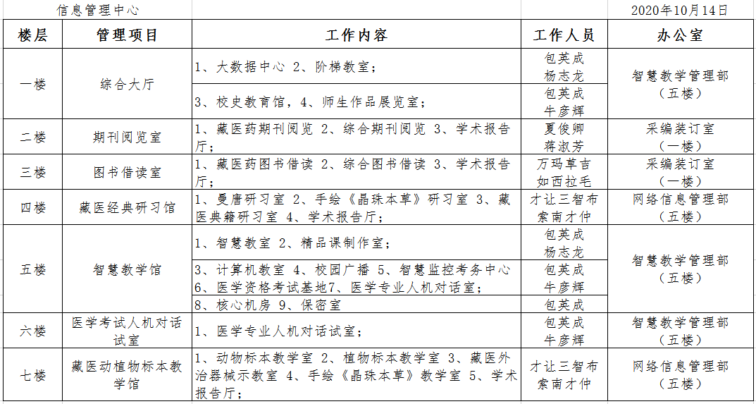 图书信息楼管理工作分工