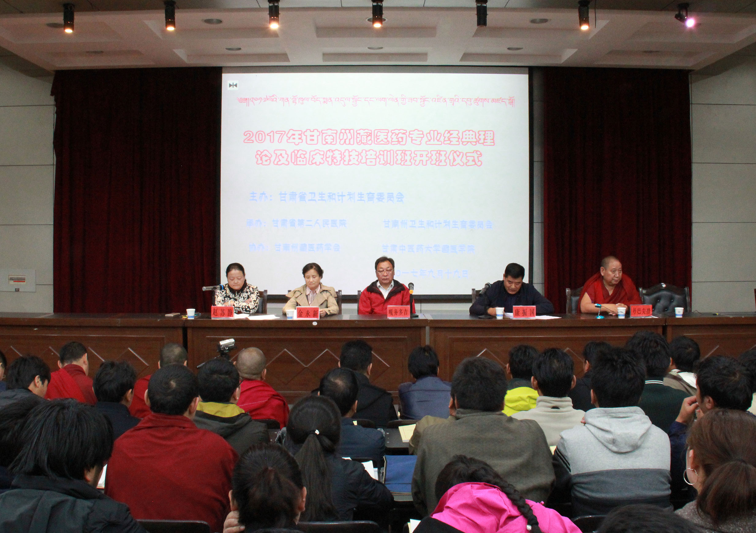 2017年9月19日至24日,西藏自治区名藏医、藏医主任医师、硕士研究生导师、国家级非物质文化遗产保护项目“藏医水银洗练及仁青常觉配伍”技艺继承人嘎务多吉教授到藏医公司举办藏医药专业经典理论及临床特技培训班。藏医公司藏医药专业全体师生共计450余人参加培训。9月19日上午9时,在藏医公司教学楼五楼阶梯教室嘎务多吉教授开班授课。