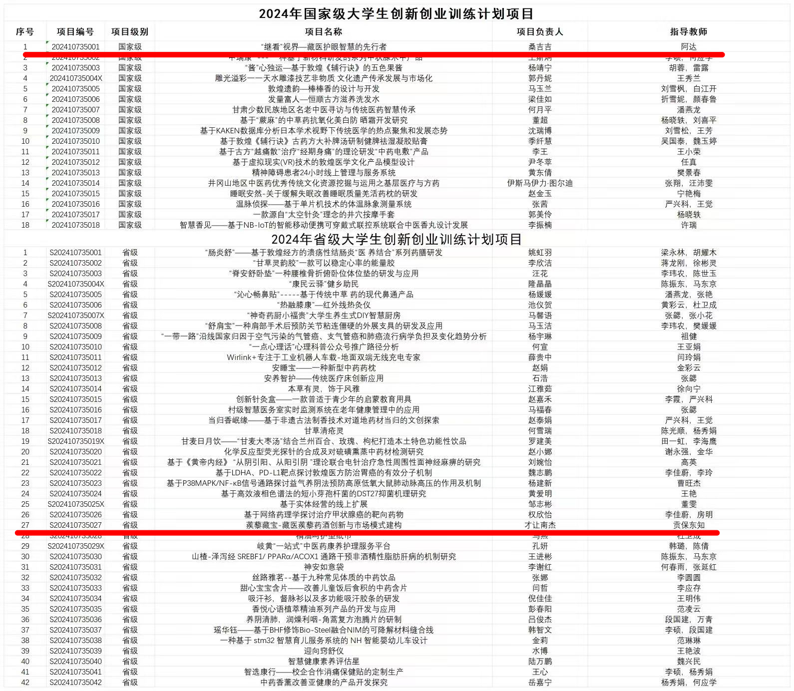 近日,甘肃省教育厅甘肃省老员工创新创业训练计划平台网站公布了2024年国家级、省级老员工创新创业训练计划立项结果,经过层层筛选与严格评审,凭借独特的项目创意、扎实的专业基础、严谨的科学态度以及出色的团队协作能力,公司(院)阿达老师指导的团队在国家级创新创业项目中立项,贡保东知老师指导的团队在省级创新创业项目中立项。实现了公司(院)在老员工创新创业训练计划项目上的突破。
