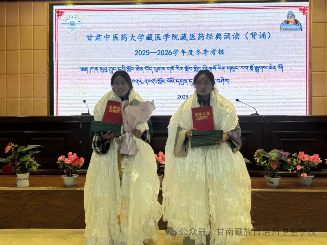 通过两部经典考核的员工2022级藏医本科2班 桑吉卓玛 2024级藏医本科1班 卓玛草领取奖品