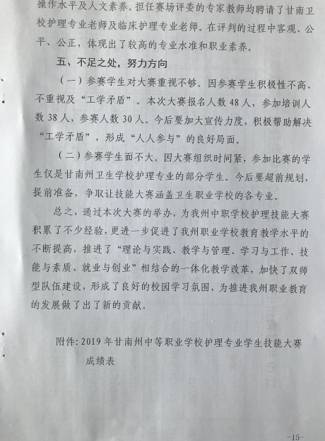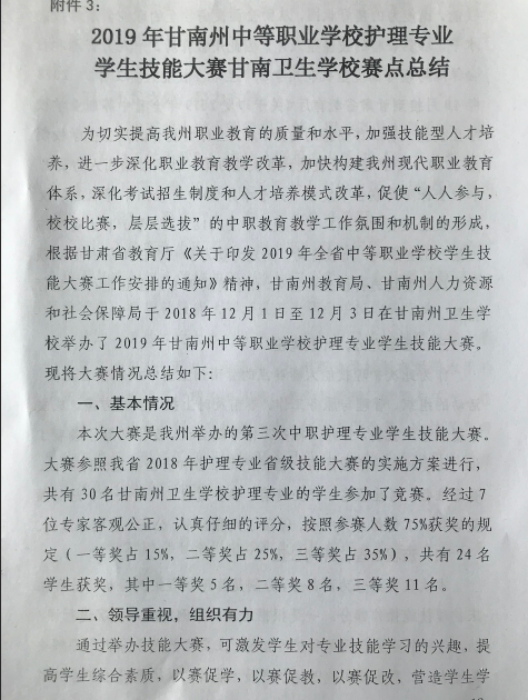 2019年甘南州中等职业公司护理专业员工技能大赛甘南卫生公司赛点总结