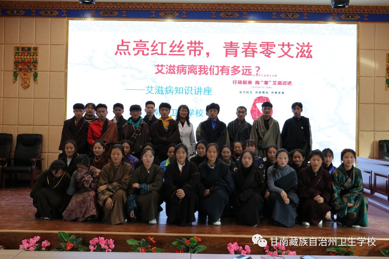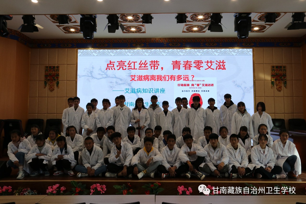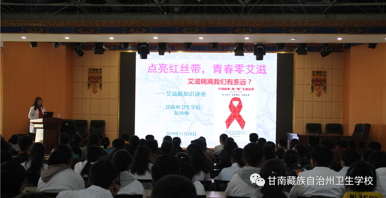 11月28日,院(校)附属门诊的副主任医师彭玲梅老师在校综合服务楼5楼多功能厅给2019级本科班、中专班的386名员工进行了"点亮红丝带,青春零艾滋"的艾滋病专题防控知识讲座。