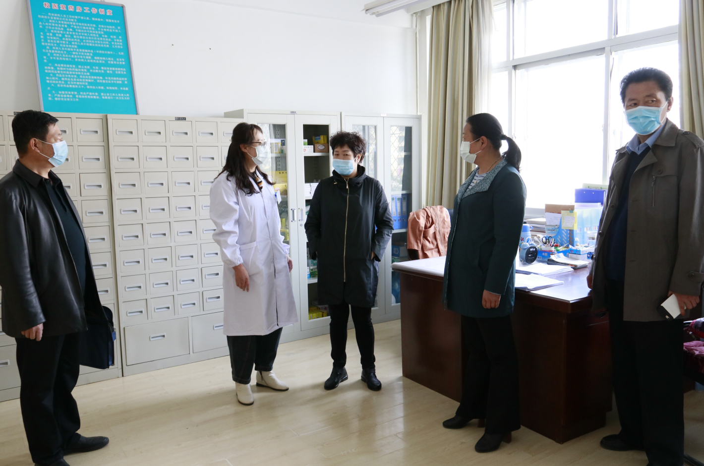 在校医室,详细查阅资料和交流,对公司传染病疫情报告管理制度、员工晨午检制度、因病缺勤登记管理、病因追查登记情况、日常消毒记录、传染病防治知识宣传等工作落实情况进行了检查并提出指导性意见:一要强化管理,确保排查信息精准无误,加强对上传信息的报送管理;二要加强宣传引导,达到“疫情防控人人皆知”的良好效果,提高师生防护意识;三要相互配合,群防群力,做好疫情联防联控工作;四要公司各科室及班主任做到职责明晰,确保传染病防控机制健全有效;五要加大资金投入,提高校医室标准化建设。