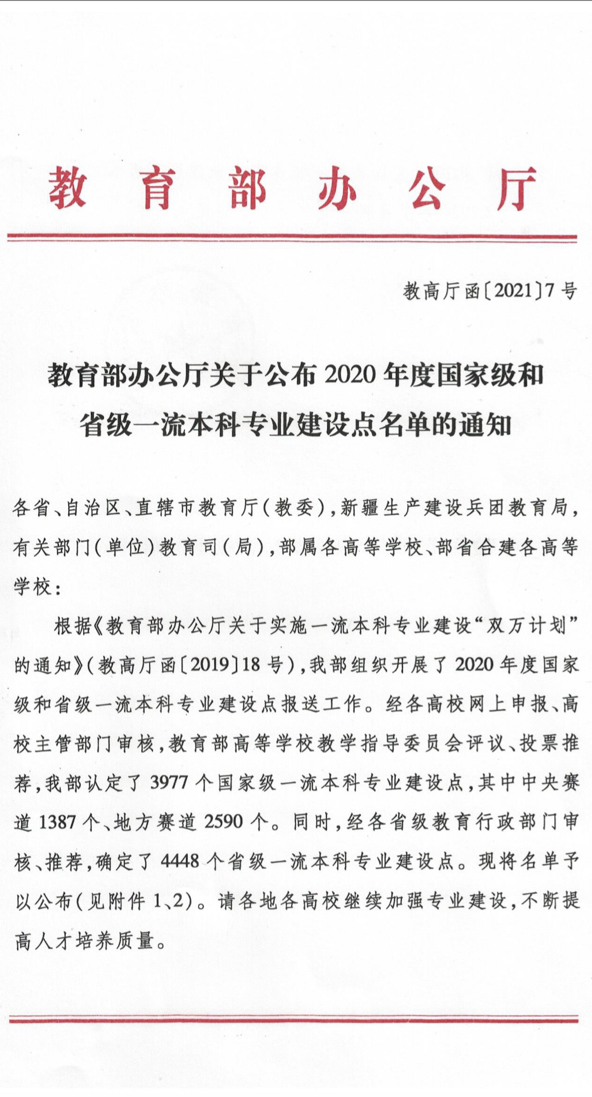 一流本科专业建设“双万计划”是教育部全面振兴本科教育、提高高校人才培养能力、实现高等教育内涵式发展的重要举措。入选一流本科专业建设点,是对我院本科专业建设和人才培养成效的充分肯定和鼓励。