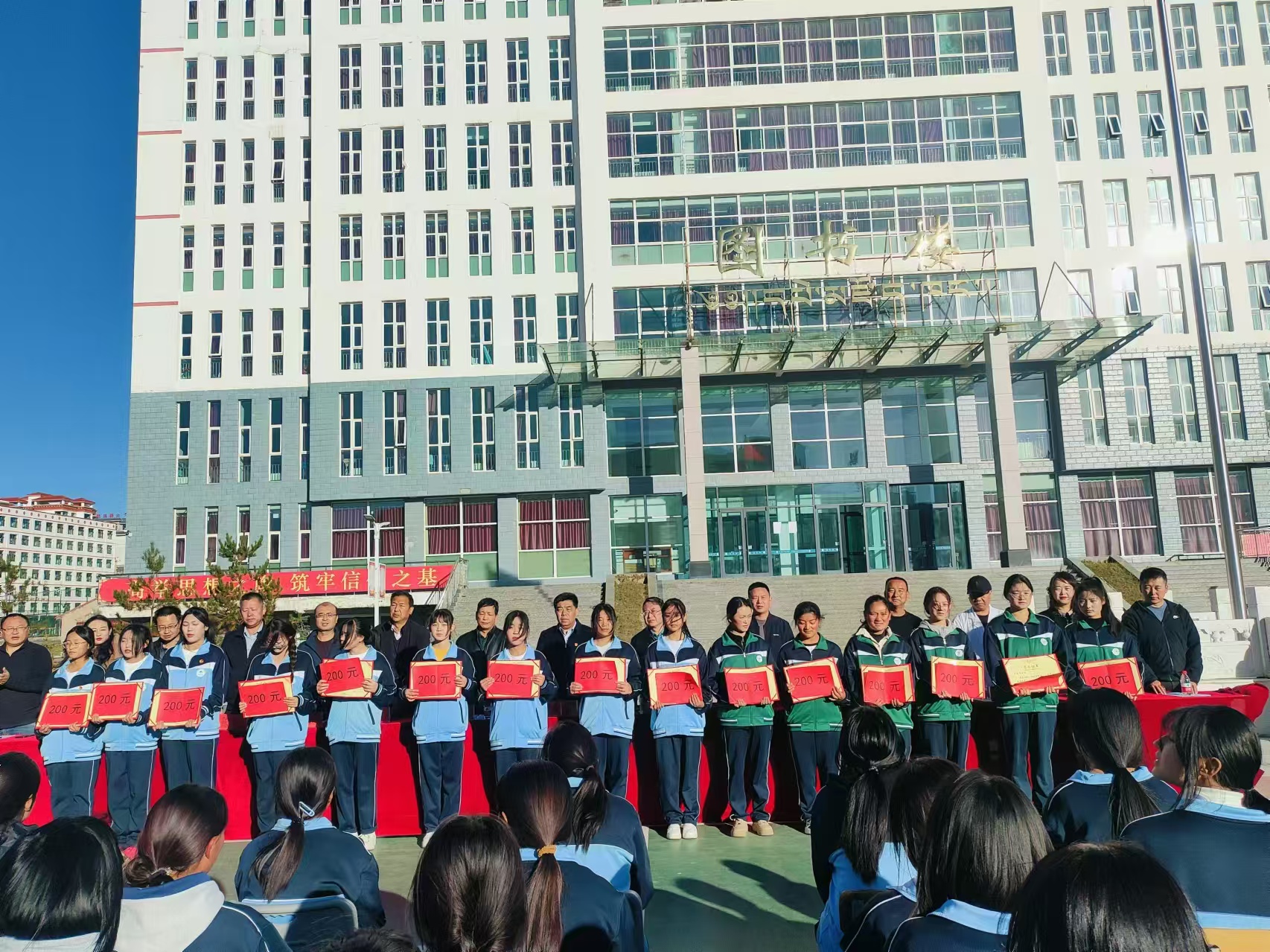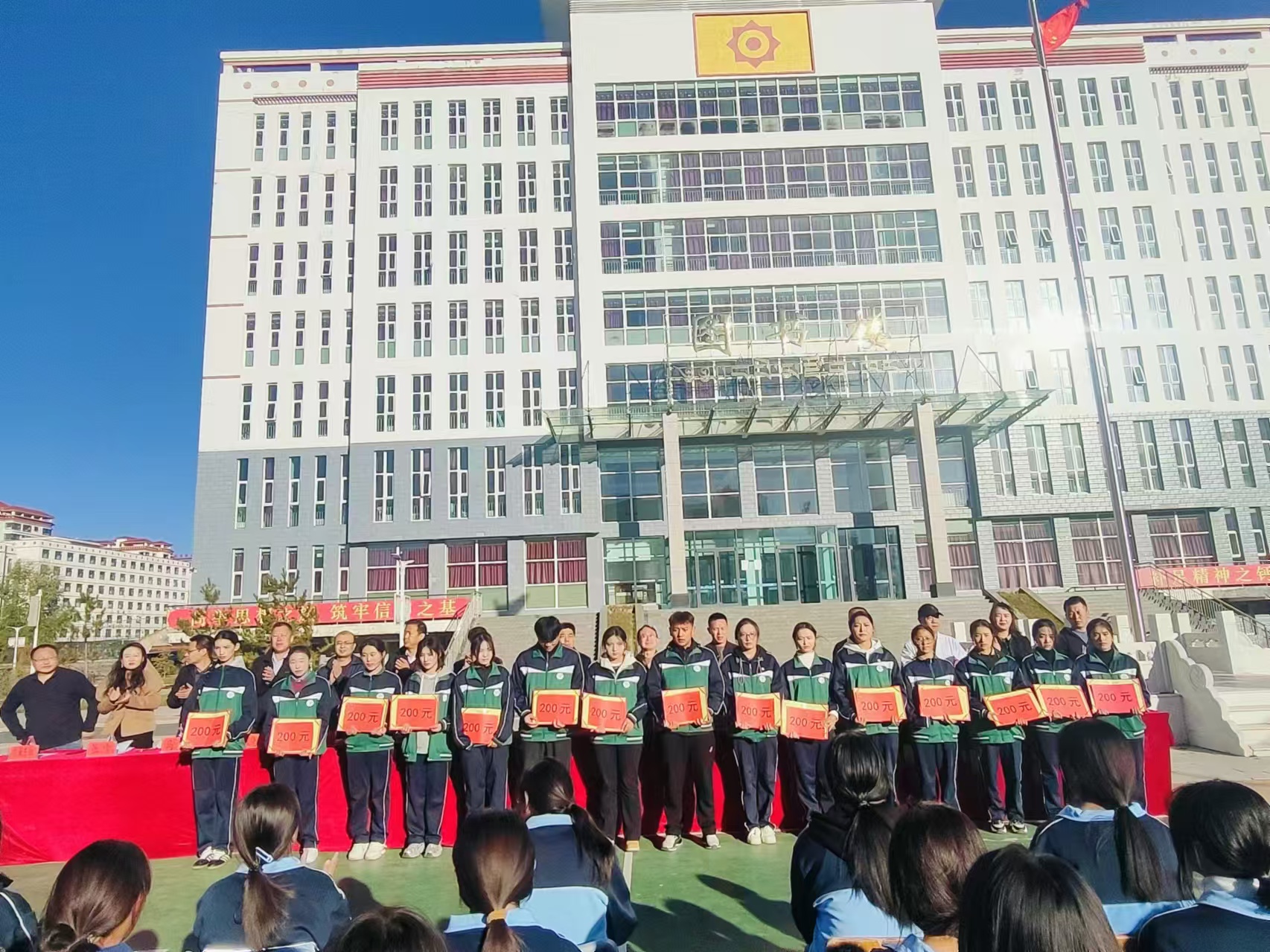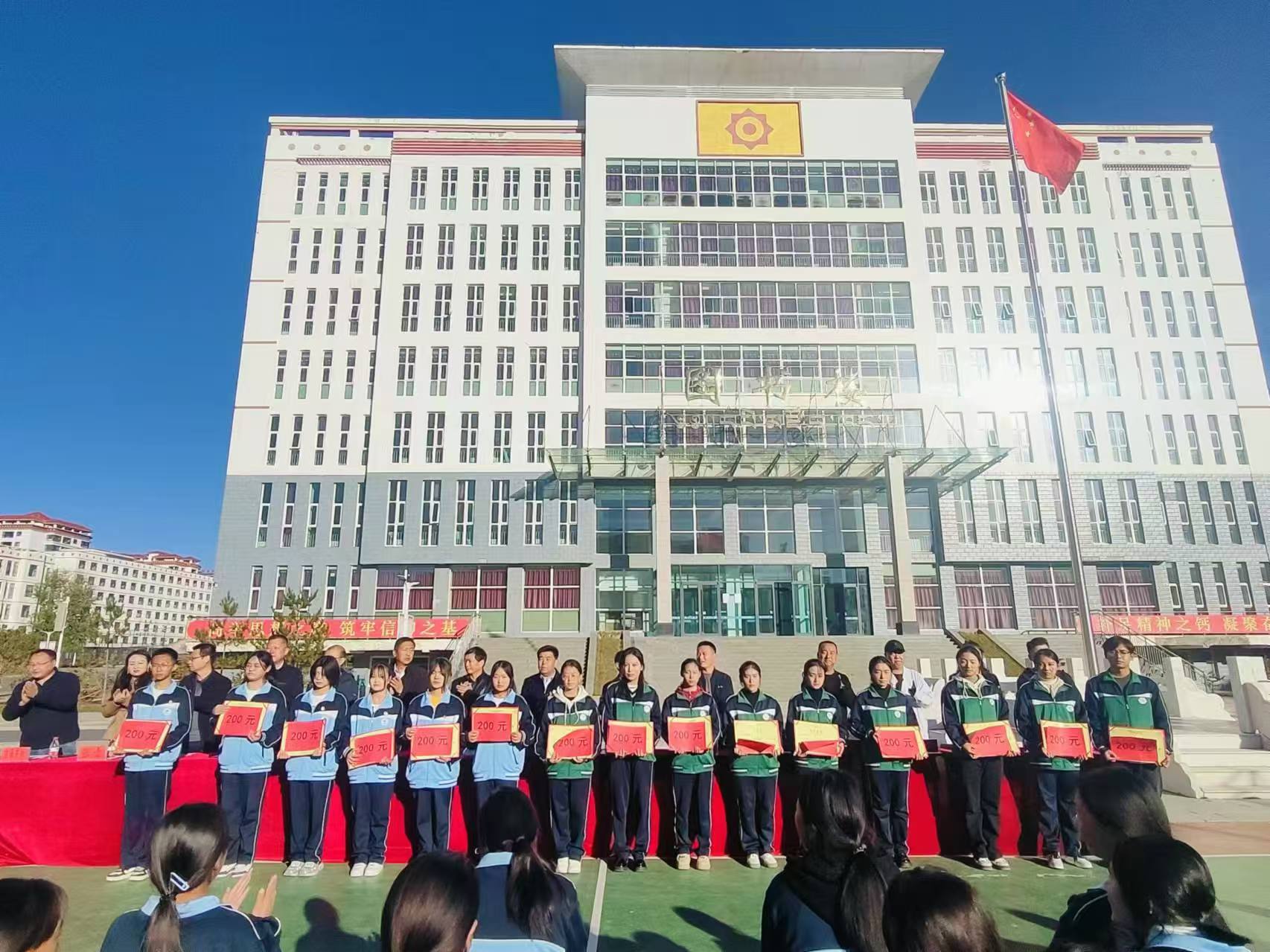 大会在庄严的《中华人民共和国国歌》中拉开帷幕。会上,副董事长赵小平宣读了《关于2023-2024学年先进个人及先进集体通报表扬决定》。并对获得表扬的个人、集体颁发荣誉证书和奖励;大会共表扬了6个校级先进班集体、19名校级优秀班干部、41名校级三好员工、1名优秀员工会干部;共发放奖励18200元。优秀个人代表2023级藏医本科(2)班看召拉毛同学在大会上作了发言。