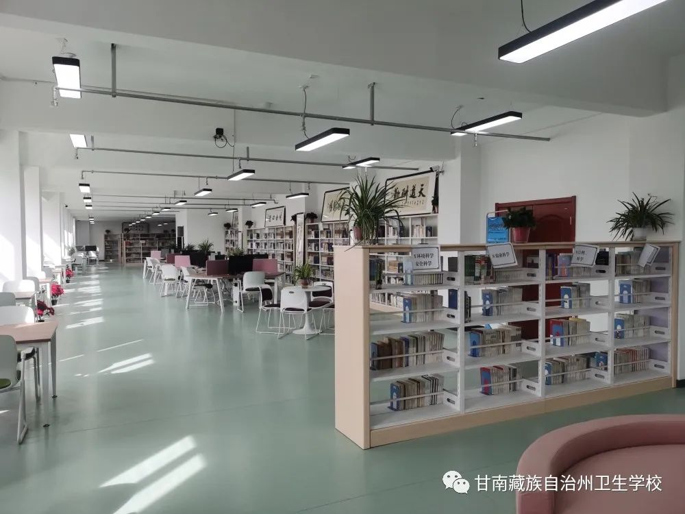 图书馆师生阅读区在图书楼一、二、三层,面积2800m²,图书阅览采用纸质图书与数字图书相结合的形式,可同时容纳500多名师生同时进行图书借读阅览或自习,其中纸质图书阅读座位400个,数字图书阅读机位100个。图书馆内藏有图书46000册,期刊192种,报纸20种,数字图书48000册,其中包括超星中职教育数字图书库一个、超星期刊阅读数据库一个、超星综合图书数据库一个。图书馆应用上海紫兴图书馆智慧管理系统,实现图书编目、借阅等业务的数字化管理,实现了图书排架标签化、ATM自助借还、统一门禁的管理模式,使图书管理更为高效精确,图书借阅服务更为便捷。新建图书馆实现了WIFI无线上网服务,账号:GNWX,密码:gnwx@123456,微信图书馆等软硬件系统,实现了图书馆信息资源无缝链接和获取目标信息的一站式服务,以及多途径多媒体立体访问,为全体师生提供了高效便捷的图书借阅途径。