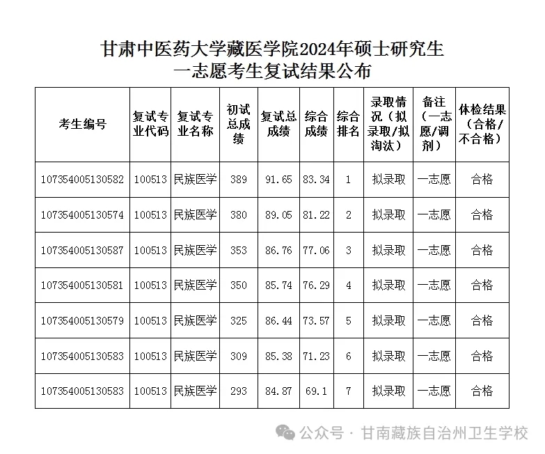 2024年硕士研究生一志愿考生复试结果公布
